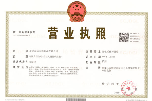 慶安雙潔天然食品有限公司認定為黑龍江省農業產業化重點龍頭企業